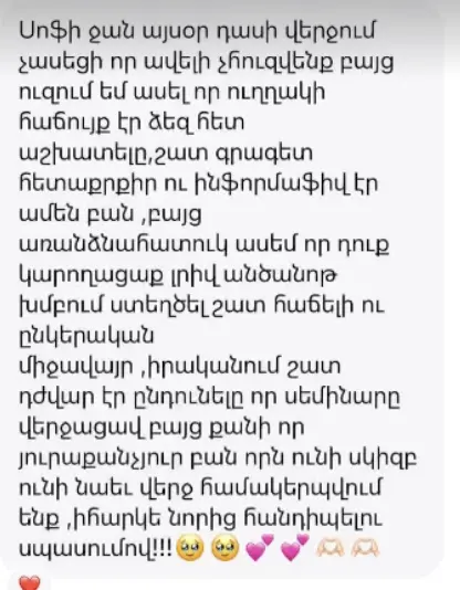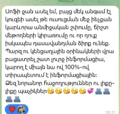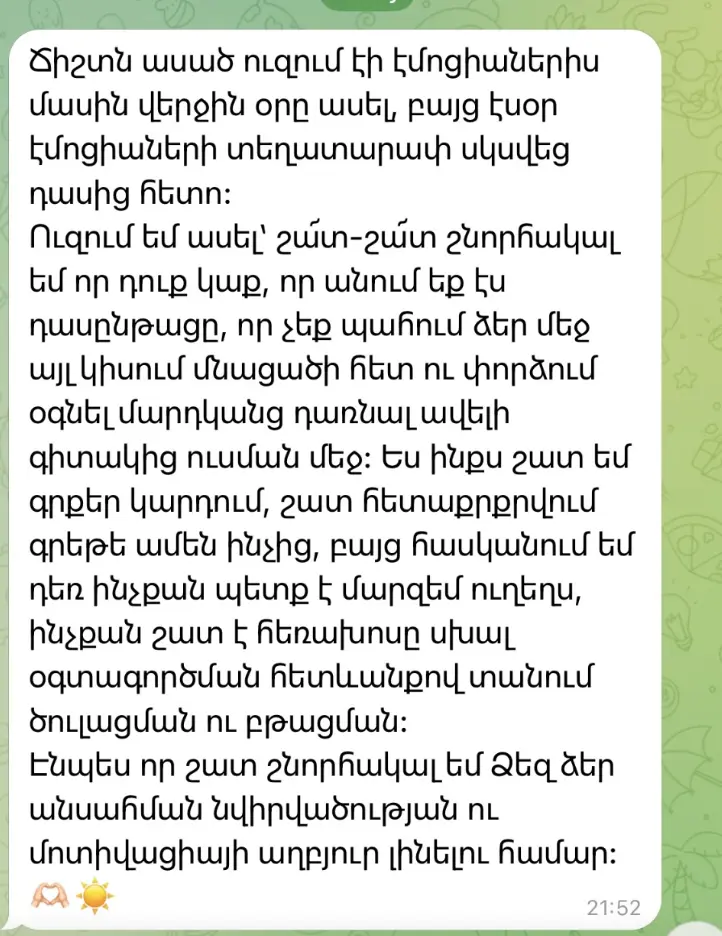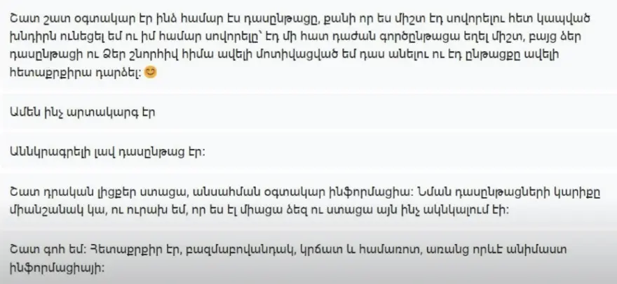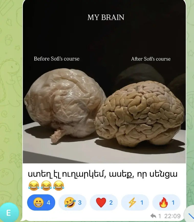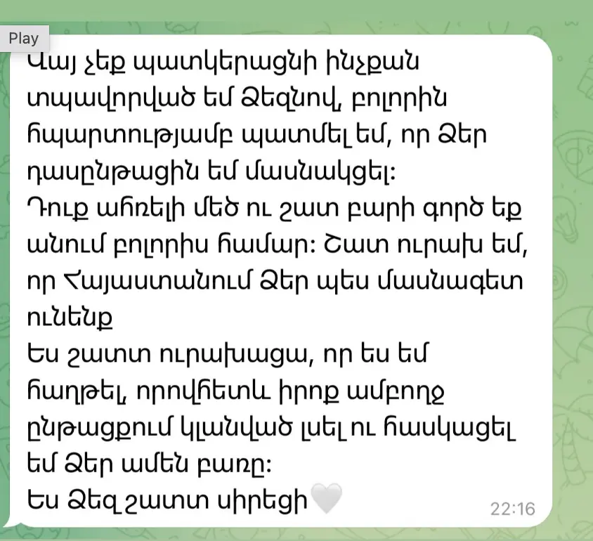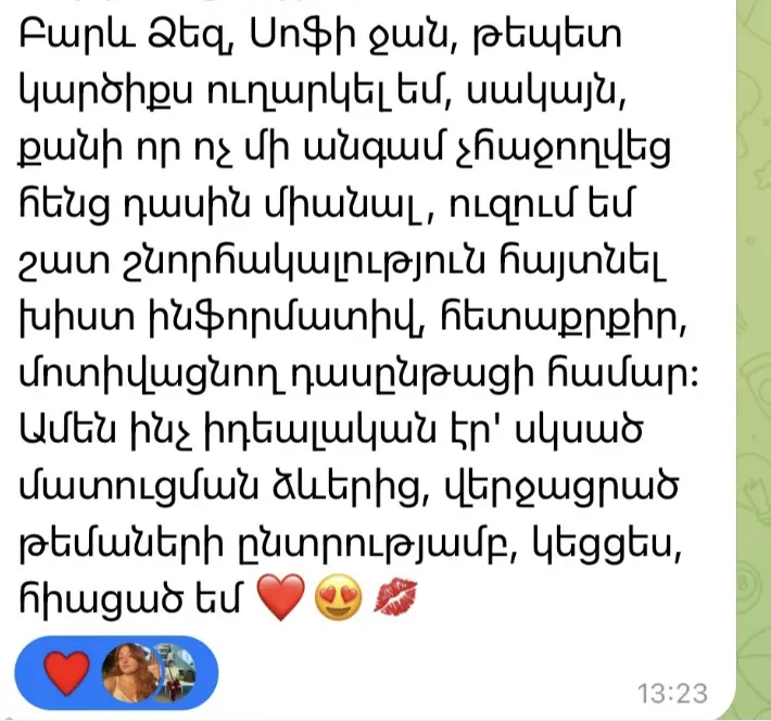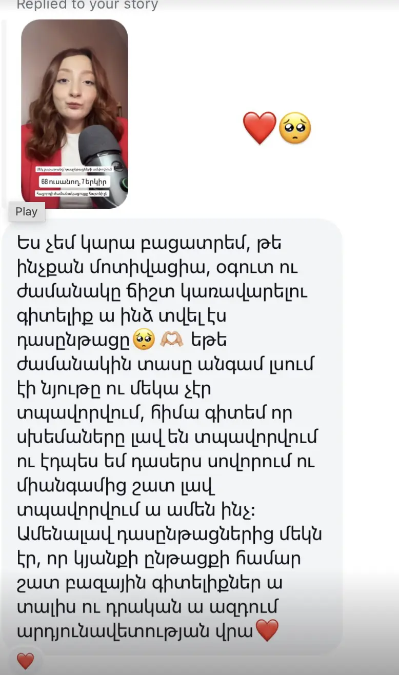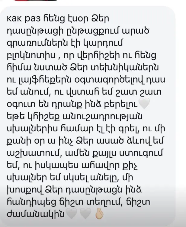 Արդեն ավելի քան 300 գոհ ուսանողներ են մասնակցել իմ դասընթացներին՝ 12 երկրից, և արդյունքները խոսում են իրենց մասին։
